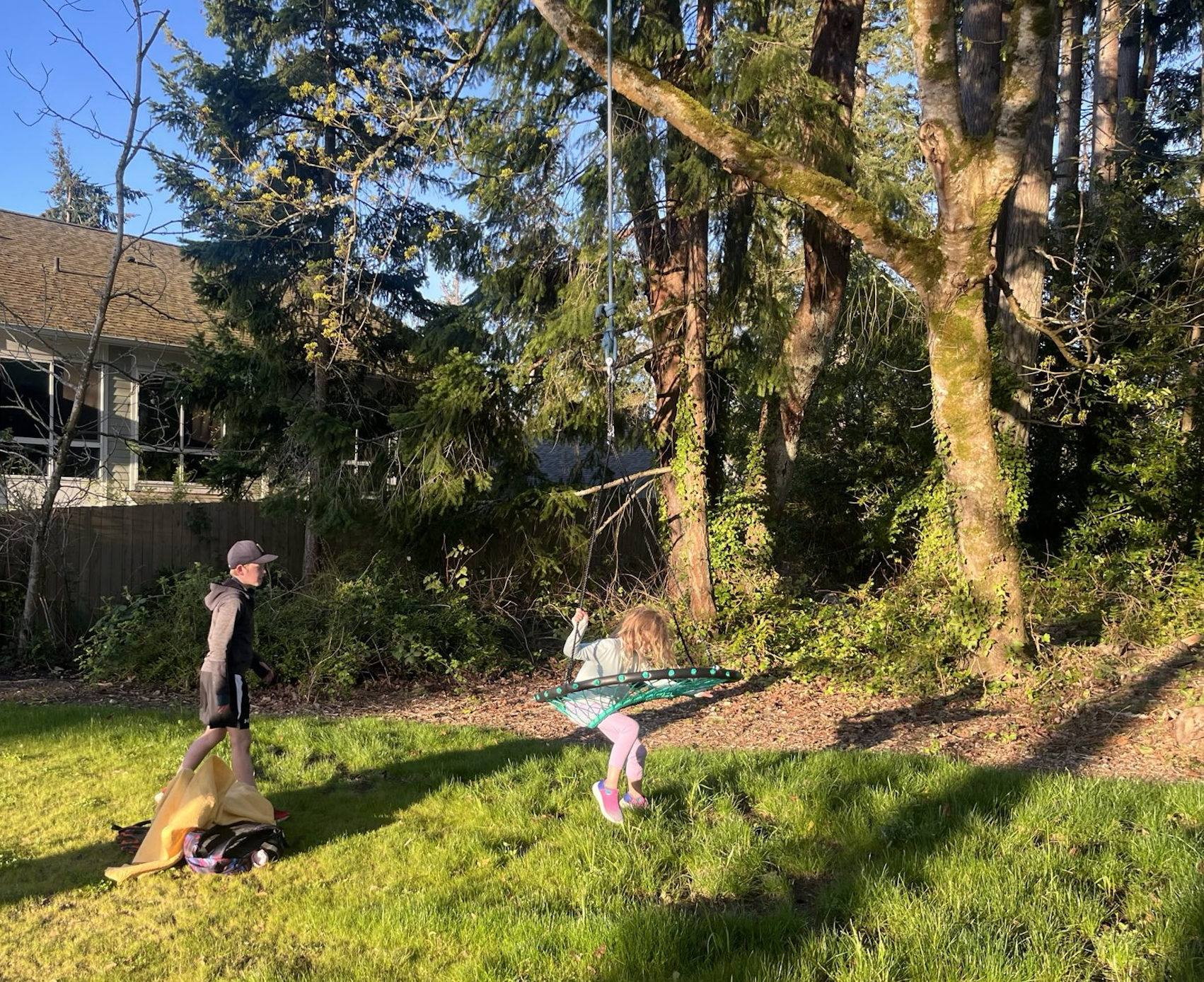 Lastly, my kids got ready early so they could play on their new swing on this beautiful spring morning. I didn't get a great photo, but it's a reminder to me of what's good in the world and why I won't look away from the things that threaten it.